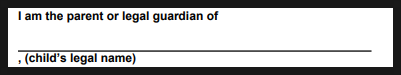 그리고, 맨 아래쪽으로 가서 Agreement 쪽에는 부모님의 사인, 신청일자, 이름을 기입합니다.